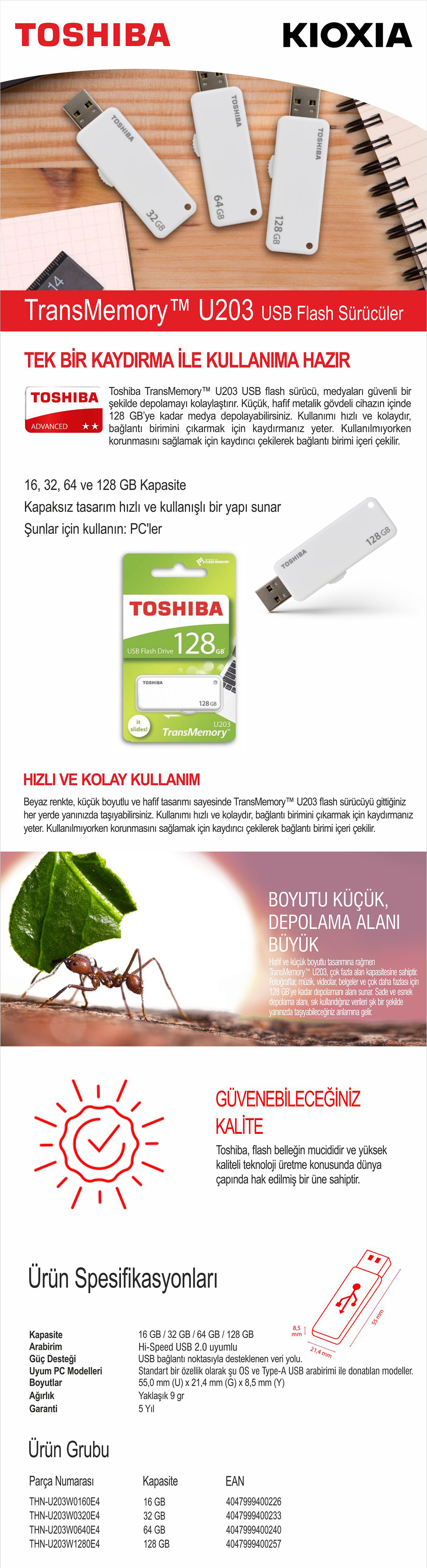 Kioxia U203 USB 2.0 Bellekler